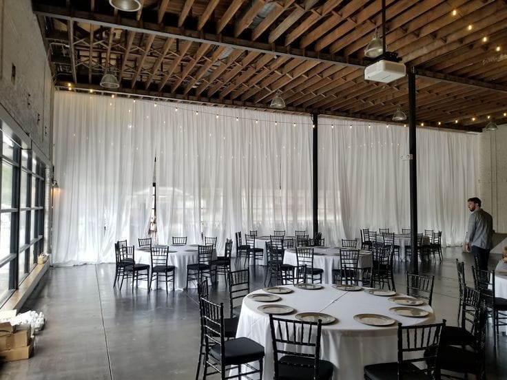 The point isnât what they use, itâs that the reception side of the room should be completely hidden and fully ready before the ceremony even begins.