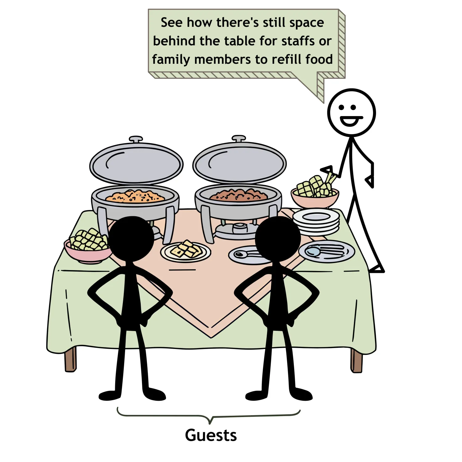 Instead, make sure there’s space behind the buffet tables ...that way, food can be refilled from the back without interrupting guests.