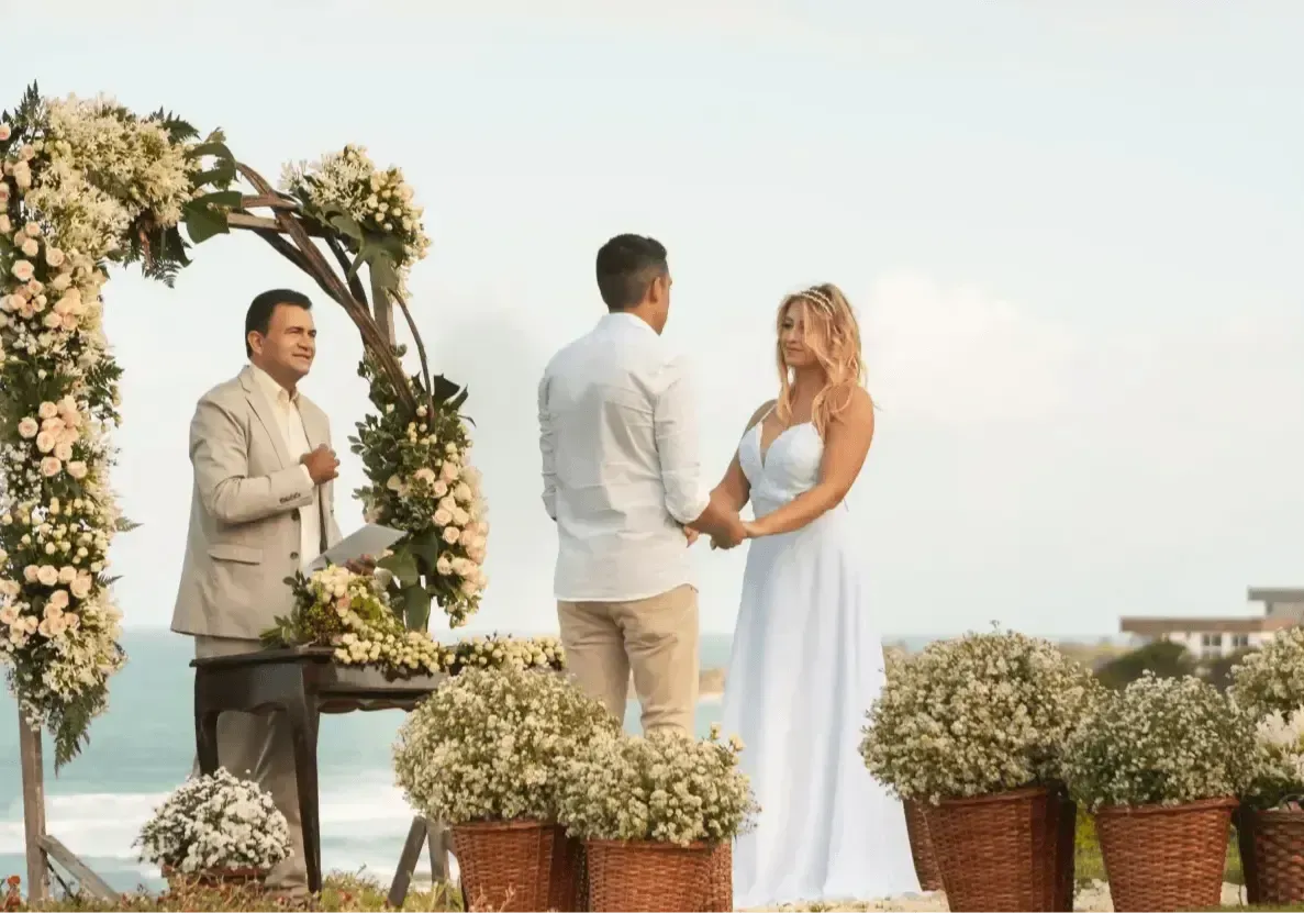 You’ll both stand right in the middle, facing each other, with your officiant behind you.