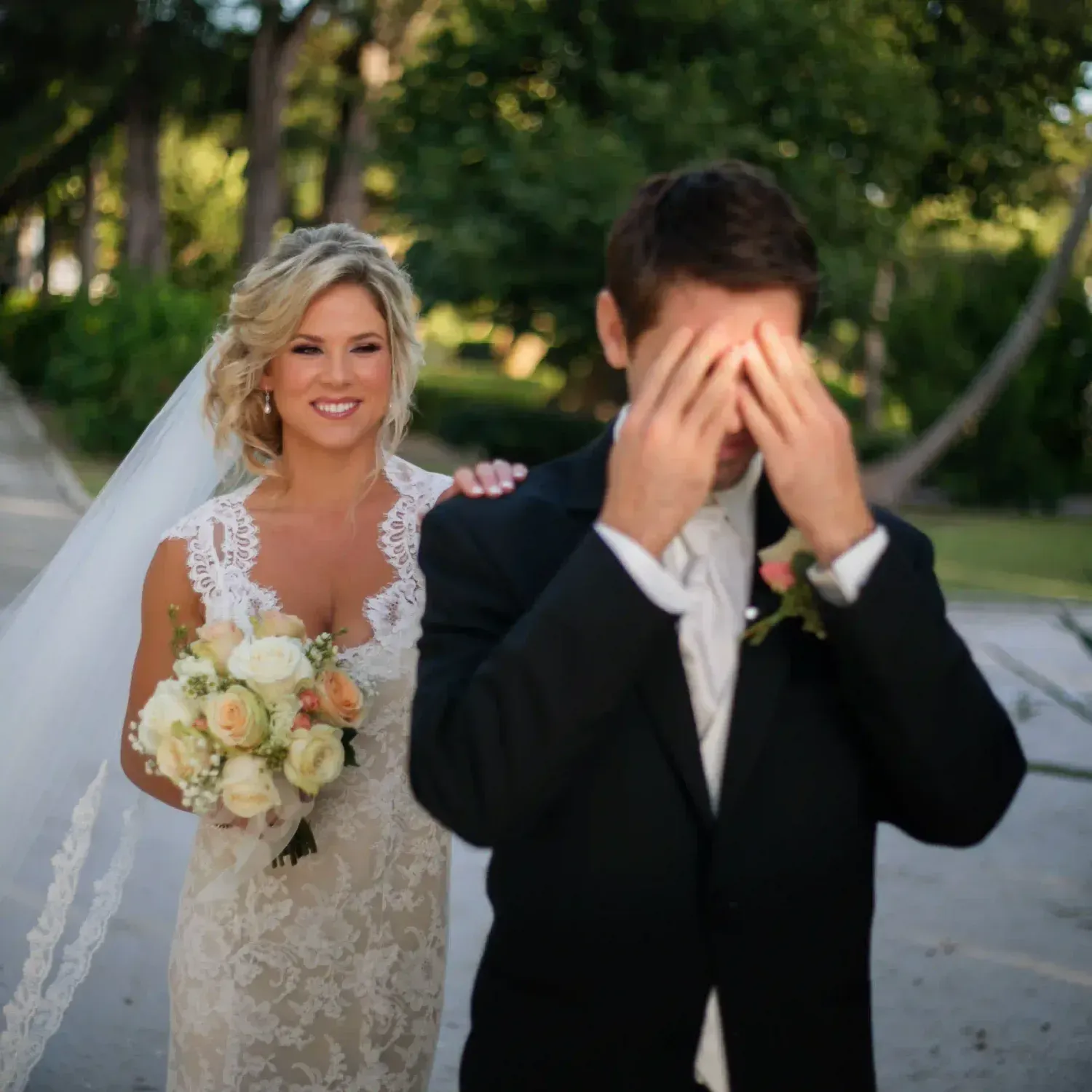 Do first look away from the venue doors so your guests won’t spot you.